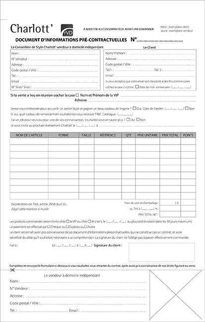 Lors des ventes en réunion, pour la prise de commande, les animatrices doivent remplir des bons de commande avec le bon de rétractation DIP sur lequel le client reconnait avoir pris connaissance des CGV et des Conditions de rétractation.